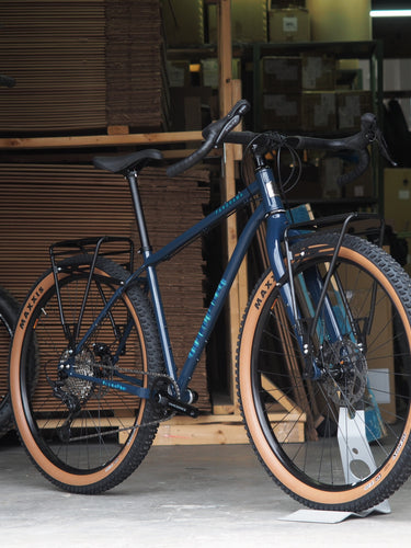 ''Here is a new steel off-roader that’s a great buy. The stats on this bike are great. There’s 29 x 2.6” tire clearance, a 20 inch climbing gear, a 52cm wide handlebar, and the ability to fit a Rohloff 14-speed gearbox hub and belt drivetrain.''