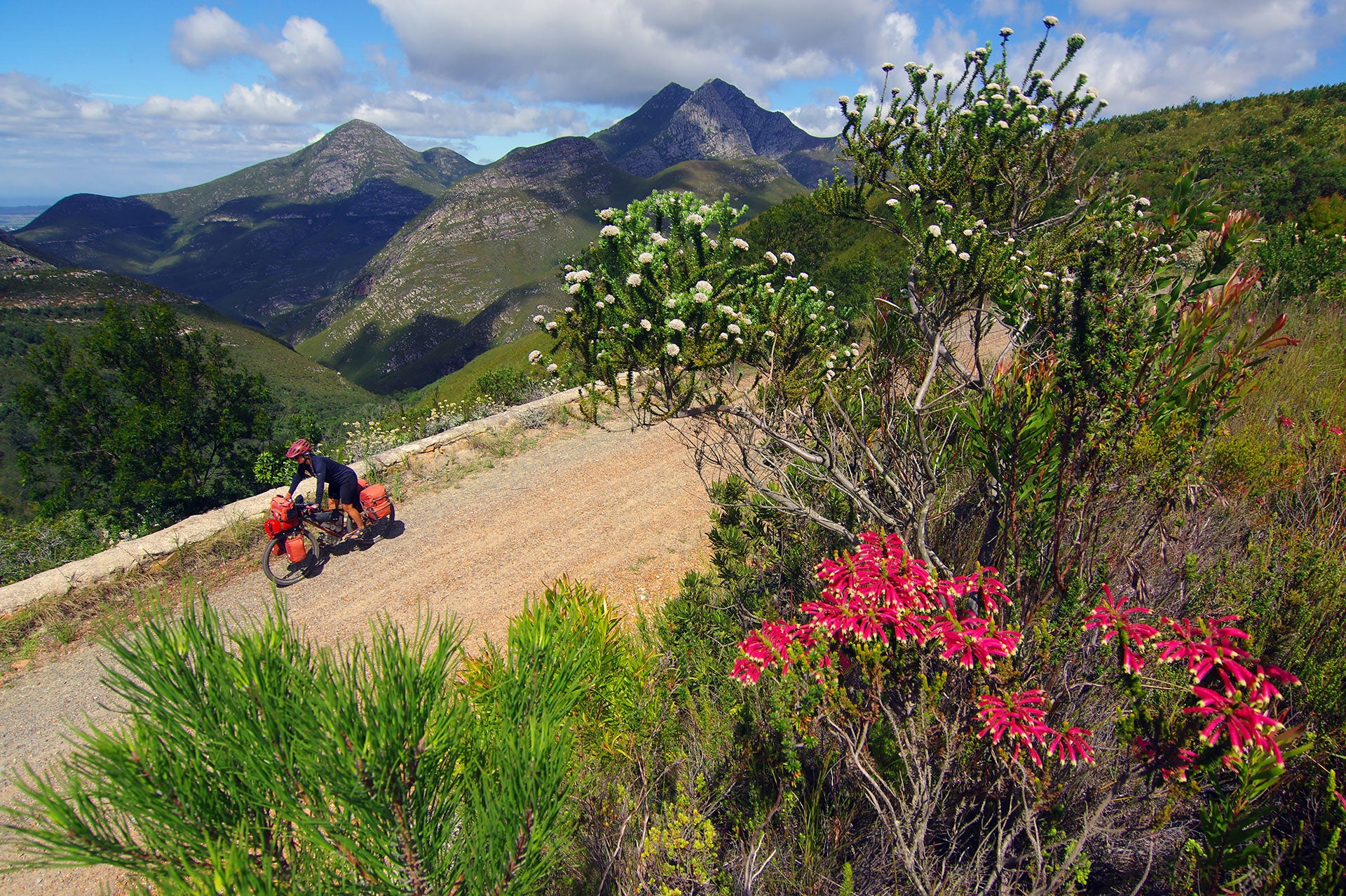 De retour en Afrique du sud pour une troisième fois, nous nous sommes étourdis à patrouiller les cols et vallées des diverses chaînes de la Ceinture plissée du Cap, formidables montagnes surgies du fond des mers qui délimitent le littoral luxuriant des étendues semi-désertiques du fameux Karoo à l'intérieur des terres et maintes vallées microcosmiques.