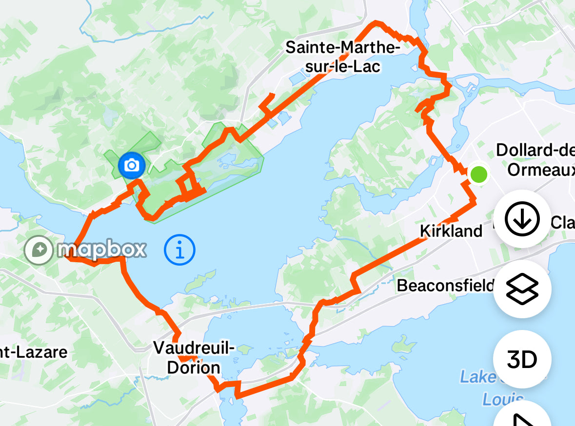 Le matin était calme et clair. Nous avons préparé du café sur la plage, savourant la tranquillité avant de partir. Les sentiers étaient vides, à l'exception de quelques cerfs qui s'éloignaient au bruit de nos pneus. Nous avons continué sur la piste cyclable depuis le parc d'Oka, traversant des quartiers et des villes, en direction du traversier. La sortie était facile, le rythme fluide alors que nous traversions l'Hudson dans une brume légère. Le trajet du retour à travers Vaudreuil et l’Île Perrot apportait une satisfaction tranquille, ce sentiment que notre boucle touchait à sa fin.